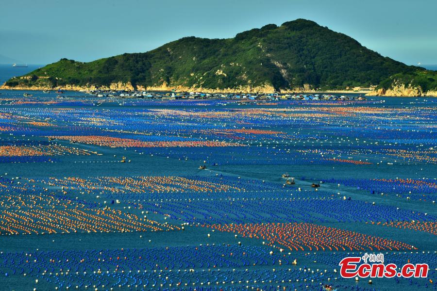 Aerial view of an abalone breeding farm in Lianjiang County, east China's Fujian Province. (Photo: China News Service/Zhang Bin)