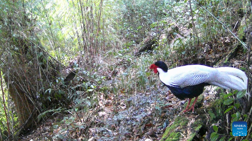 This photo taken by an infrared camera on Dec. 19, 2022 shows a silver pheasant in Gaoligong Mountain National Nature Reserve, southwest China's Yunnan Province. As one of the global biodiversity hotspots, the Gaoligong Mountains are home to about 17 percent of higher plants, about 30 percent of mammals and 35 percent of birds in China in terms of the number of species. (Xinhua)