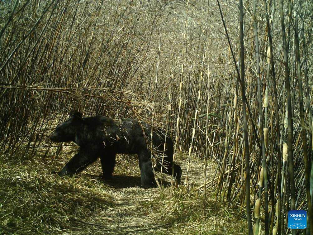This photo taken by an infrared camera on April 9, 2023 shows a black bear in Gaoligong Mountain National Nature Reserve, southwest China's Yunnan Province. As one of the global biodiversity hotspots, the Gaoligong Mountains are home to about 17 percent of higher plants, about 30 percent of mammals and 35 percent of birds in China in terms of the number of species. (Xinhua)