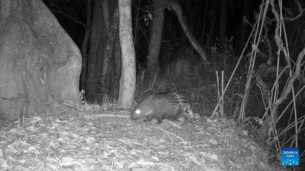 This photo taken by an infrared camera on March 25, 2022 shows a porcupine in Gaoligong Mountain National Nature Reserve, southwest China's Yunnan Province. As one of the global biodiversity hotspots, the Gaoligong Mountains are home to about 17 percent of higher plants, about 30 percent of mammals and 35 percent of birds in China in terms of the number of species. (Xinhua)