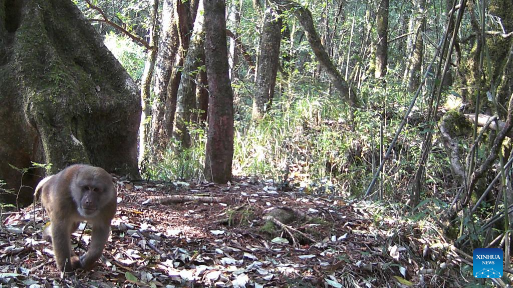 This photo taken by an infrared camera on March 21, 2022 shows an assamese macaque in Gaoligong Mountain National Nature Reserve, southwest China's Yunnan Province. As one of the global biodiversity hotspots, the Gaoligong Mountains are home to about 17 percent of higher plants, about 30 percent of mammals and 35 percent of birds in China in terms of the number of species. (Xinhua)