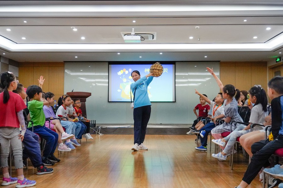 Children attend a science class at Shanghai Zoo in Shanghai, east China, July 15, 2023. (Xinhua/Xin Mengchen)