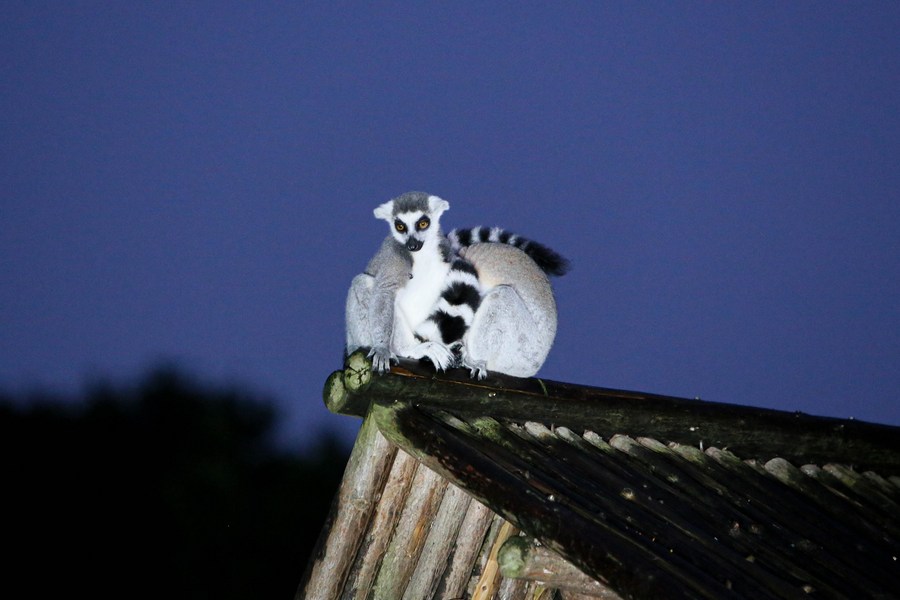 This photo taken on July 15, 2023 shows a ring-tailed lemur at Shanghai Zoo in Shanghai, east China. (Xinhua/Xin Mengchen)