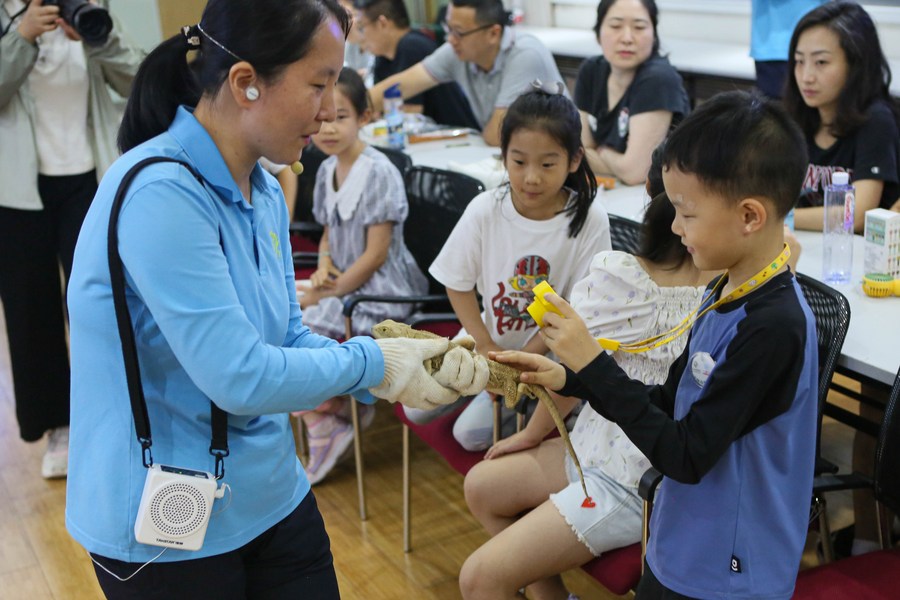 Children and their families attend a science class at Shanghai Zoo in Shanghai, east China, July 15, 2023. (Xinhua/Xin Mengchen)