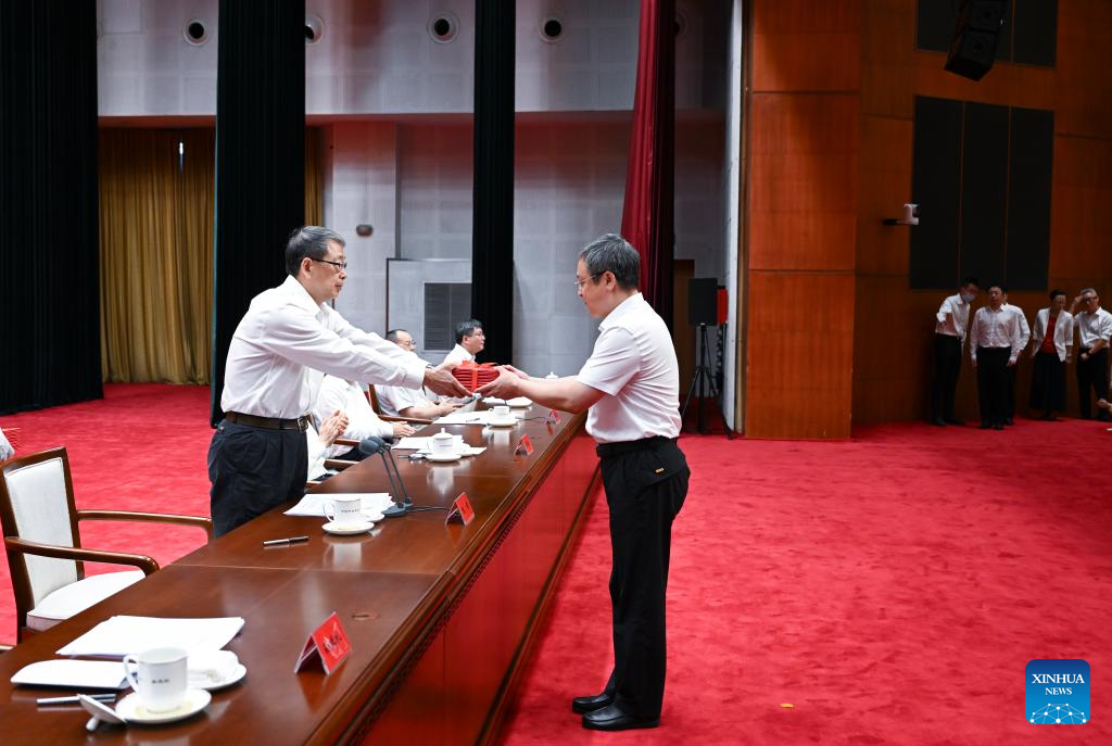 Chen Xi, president of the Party School of the Communist Party of China (CPC) Central Committee (National Academy of Governance), attends a graduation ceremony for the 2023 spring semester and presents certificates to graduates on July 15, 2023. (Xinhua/Zhang Ling)