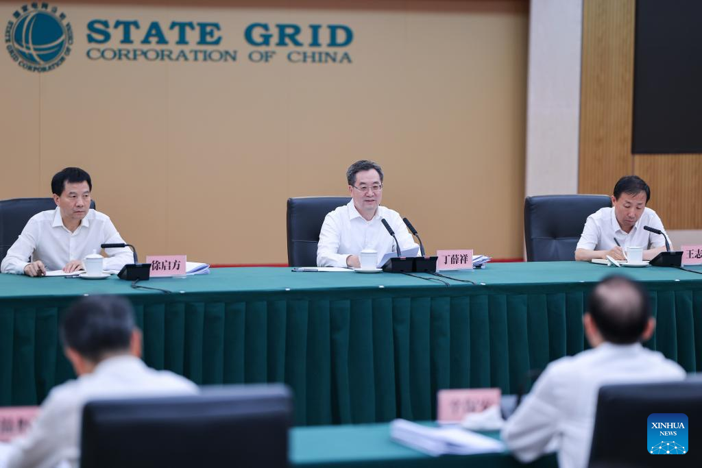 Chinese Vice Premier Ding Xuexiang, also a member of the Standing Committee of the Political Bureau of the Communist Party of China Central Committee chairs a meeting in Beijing, capital of China, July 15, 2023. Ding made research tours to China Huaneng Group and the State Grid and chaired a meeting on ensuring power supply on Saturday. (Xinhua/Liu Bin)