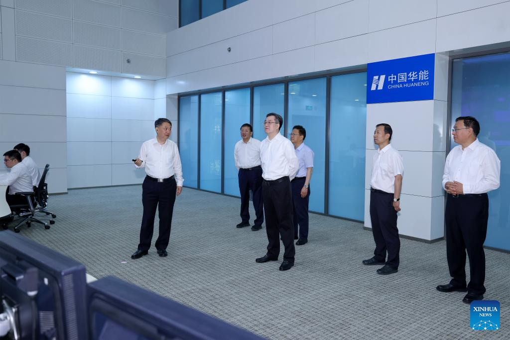 Chinese Vice Premier Ding Xuexiang, also a member of the Standing Committee of the Political Bureau of the Communist Party of China Central Committee, learns about energy supply situation at a supervision center of China Huaneng Group in Beijing, capital of China, July 15, 2023. Ding made research tours to China Huaneng Group and the State Grid and chaired a meeting on ensuring power supply on Saturday. (Xinhua/Liu Bin)