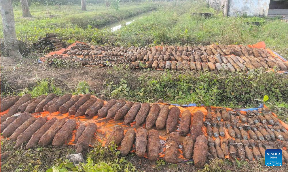 This photo taken on Dec. 13, 2022 shows the unexploded ordnance found in Tinh Bien county of An Giang province, Vietnam.(VNA/Handout via Xinhua)