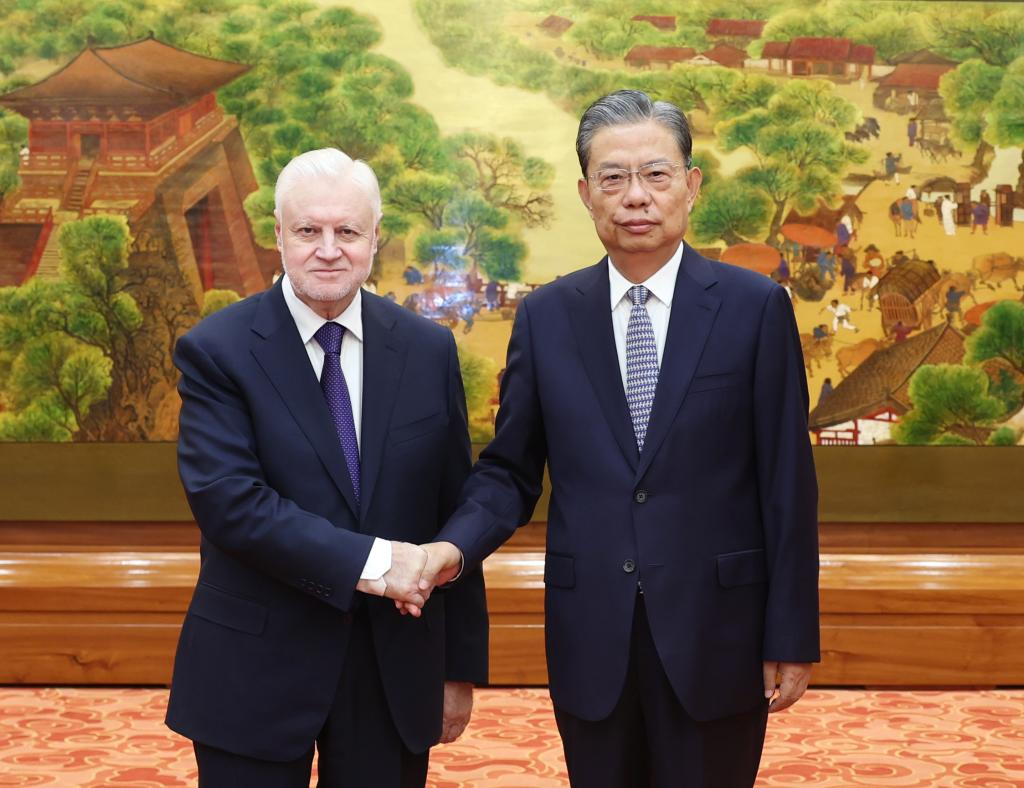 Zhao, chairman of the National People's Congress Standing Committee, said that under the strategic guidance and personal promotion of the two heads of state, China and Russia have continuously deepened political mutual trust, steadily advanced practical cooperation and maintained close and effective international coordination, setting a model of a new type of major-country relations.