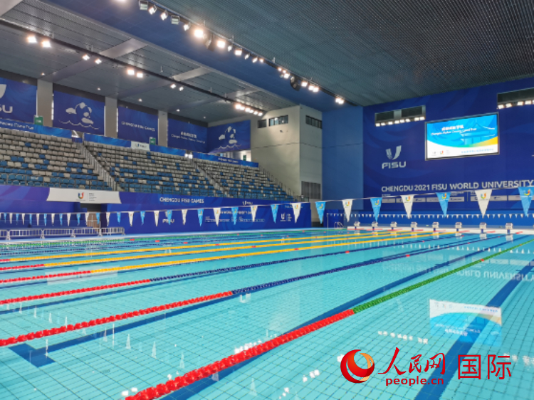 An image shows an interior view of the Dong'an Lake Sports Park Aquatics Center. (People's Daily Online/Fu Yuanyuan)