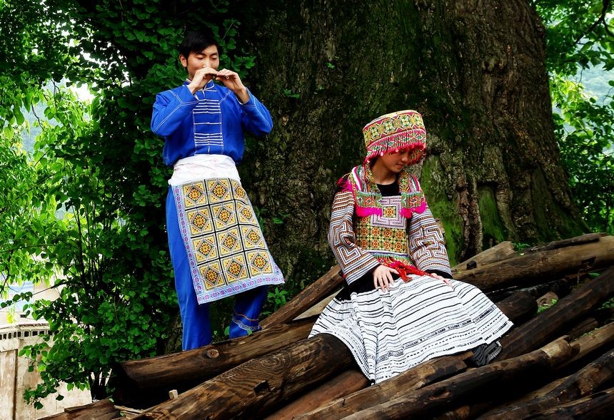 People of Siyin Miao, a branch of the Miao ethnic group, play the Zimeixiao, a traditional pipe instrument of the Buyi and Miao ethnic groups, in Maige Miao and Buyi ethnic township, Qingzhen city, southwest China's Guizhou Province. (Photo/Duan Biao)