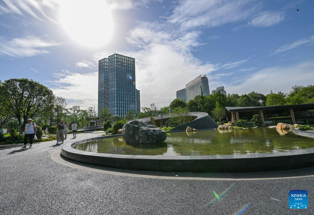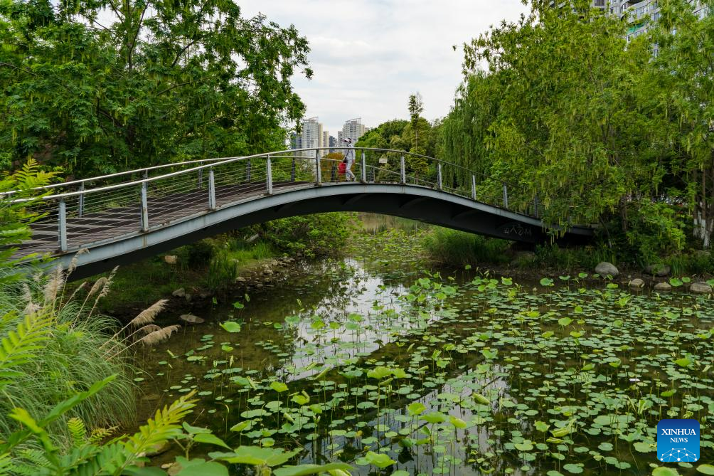 People have fun at a park in Chengdu, capital of southwest China's Sichuan Province, July 12, 2023. The 31st International University Sports Federation (FISU) Summer World University Games will be held in Chengdu from July 28 to August 8. (Xinhua/Wang Xi)