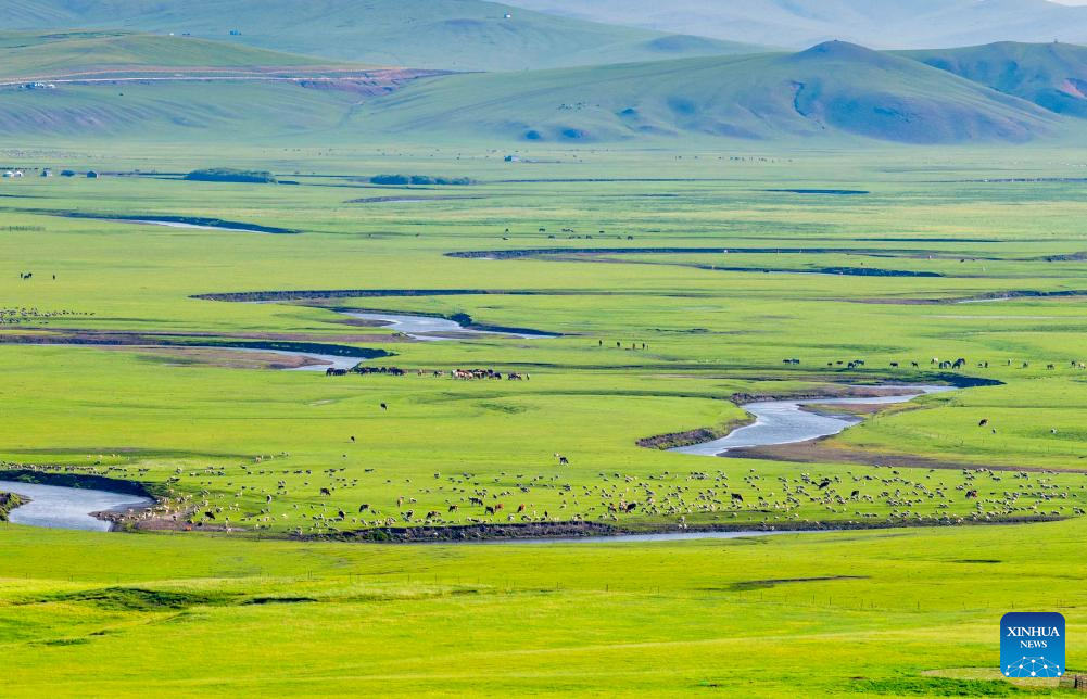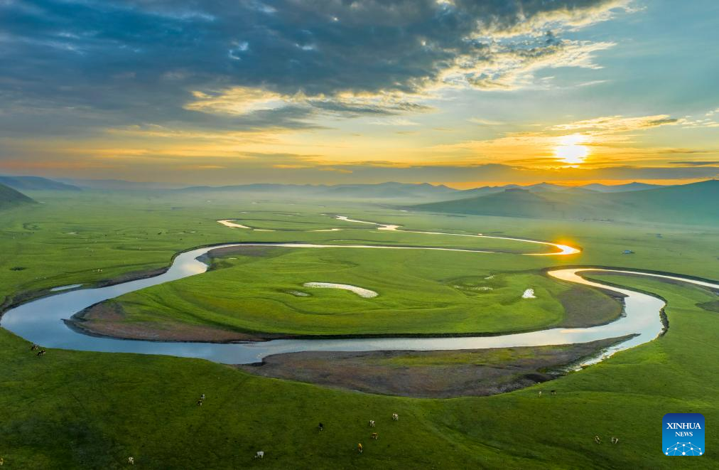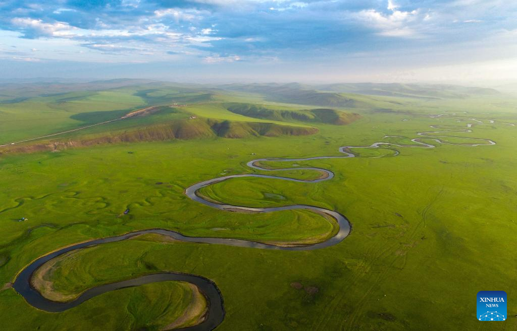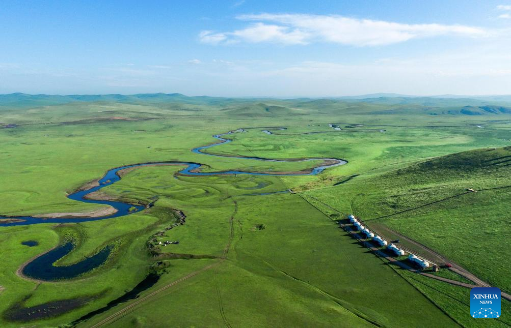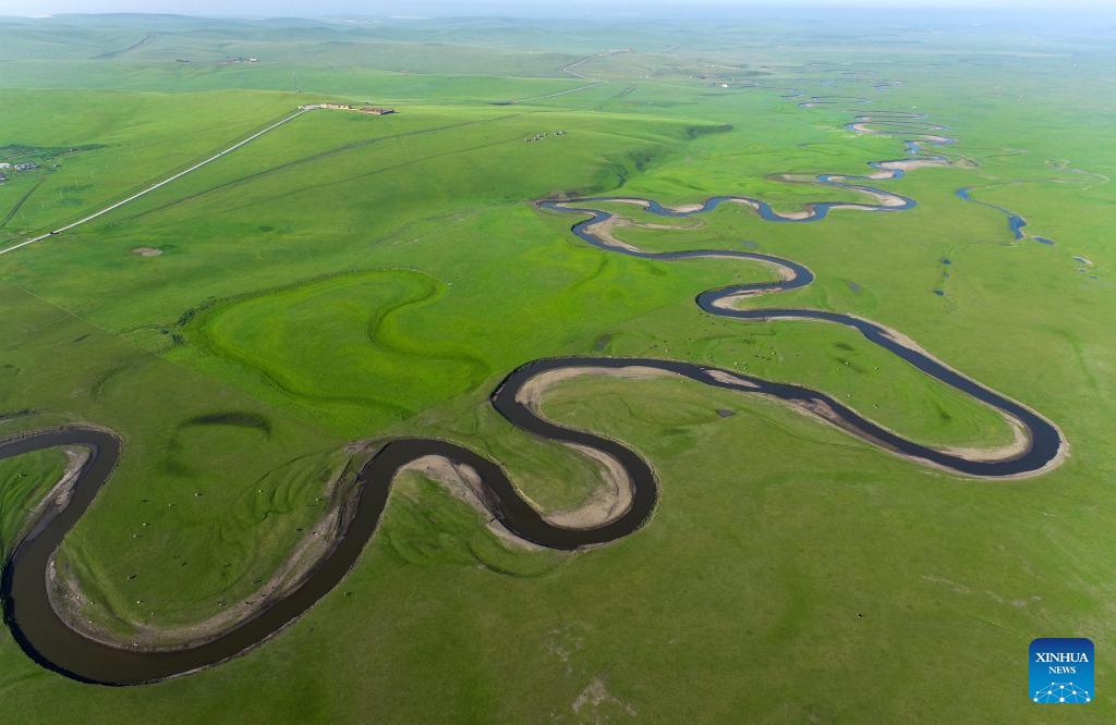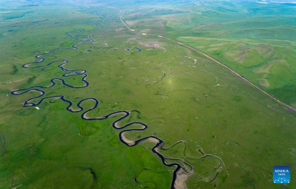 This aerial photo taken on July 18, 2023 shows the scenery along the Mergel Gol River in Hulun Buir, north China's Inner Mongolia Autonomous Region. (Photo by Wang Zheng/Xinhua)