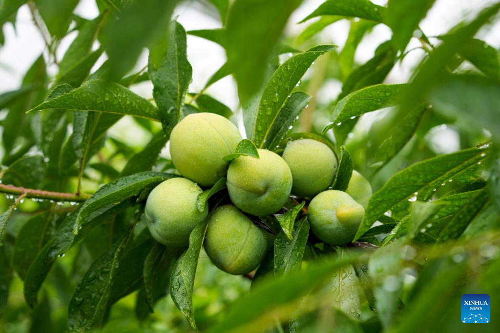 This photo taken on June 29, 2023 shows crisp plums at Wenfeng Village of Wushan County, southwest China's Chongqing. Known for its crisp, juicy and tender flesh, the crisp plum is one of the major fruits grown in Wushan County, playing a vital role in boosting rural revitalization. The improvement of logistics and delivery service have contributed to the sales of the dainty fruit across the country. (Xinhua/Liu Chan)