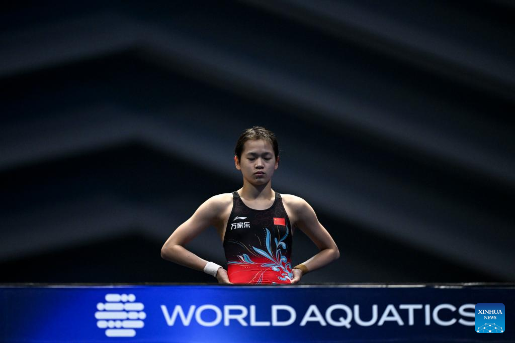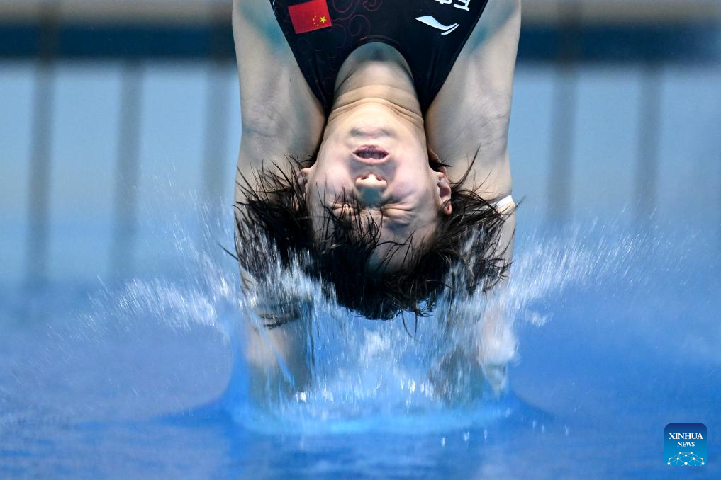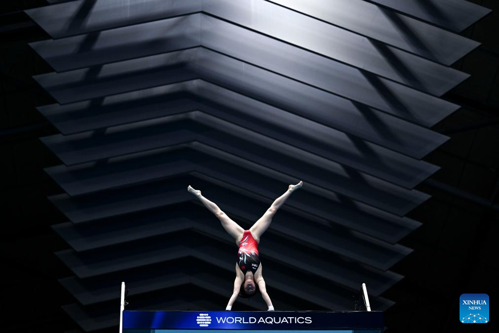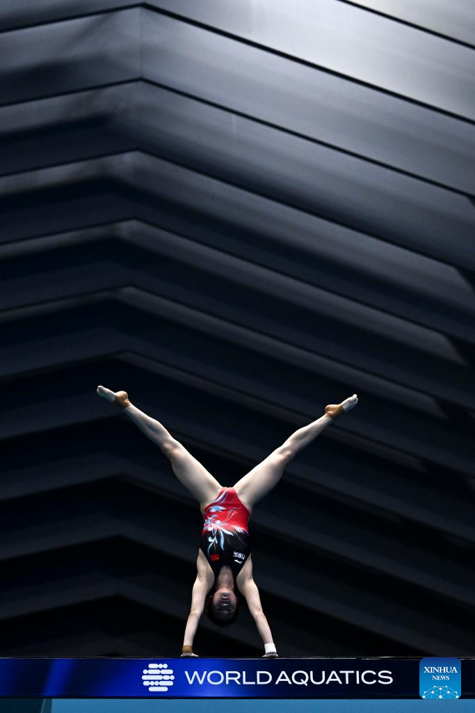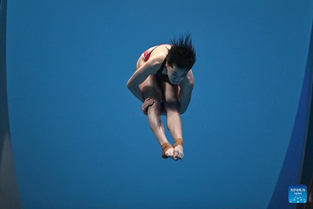 Quan Hongchan of China competes during the women's 10m platform final of the World Aquatics Championships 2023 in Fukuoka, Japan, July 19, 2023. (Xinhua/Xu Chang)