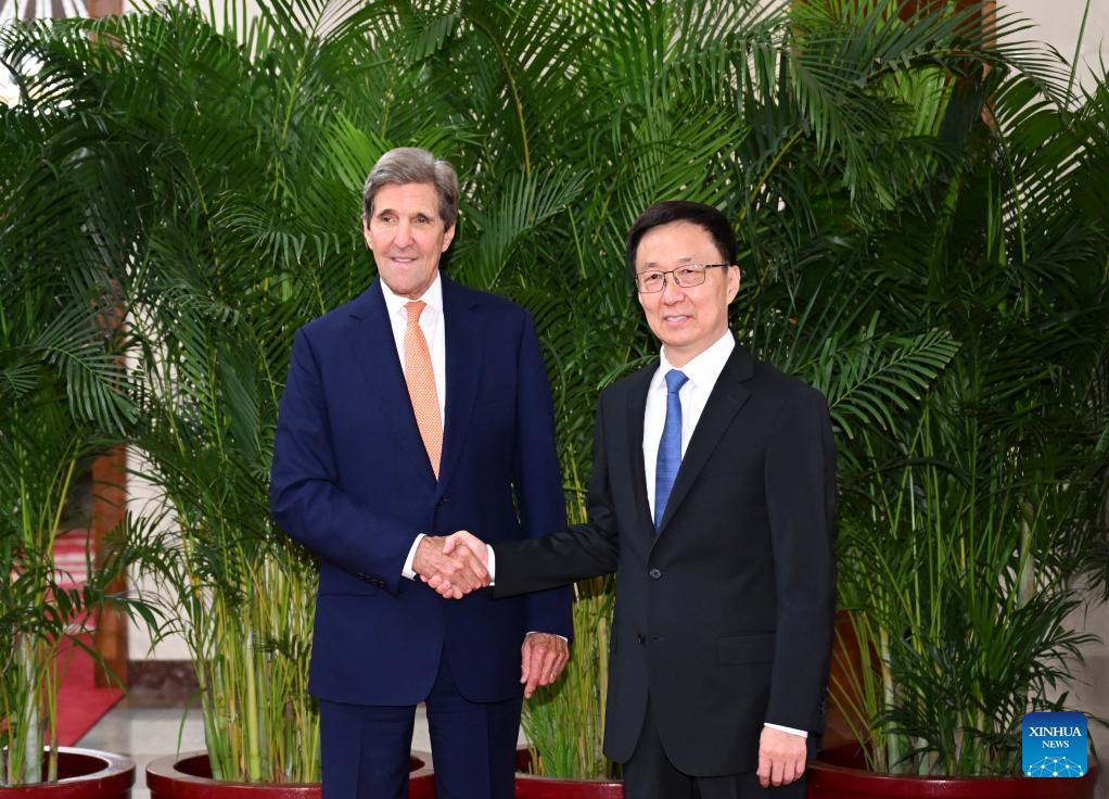 BEIJING, July 19 (Xinhua) -- Chinese Vice President Han Zheng met with U.S. Special Presidential Envoy for Climate John Kerry in Beijing on Wednesday.