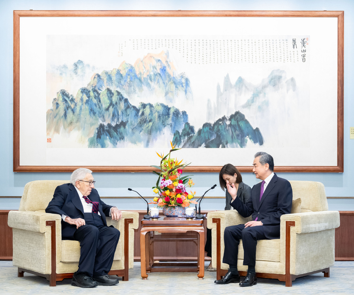 At a meeting with Kissinger in Beijing, Wang, director of the Office of the Foreign Affairs Commission of the Communist Party of China Central Committee, said the 100-year-old former diplomat has played an irreplaceable role in promoting mutual understanding between the two countries.