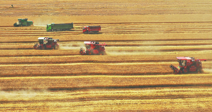 A harvester competition, to boost efficiency, was held in Tuqiao village, Bozhou, Anhui province. [Photo by ZHAO YANLIN/FOR CHINA DAILY]