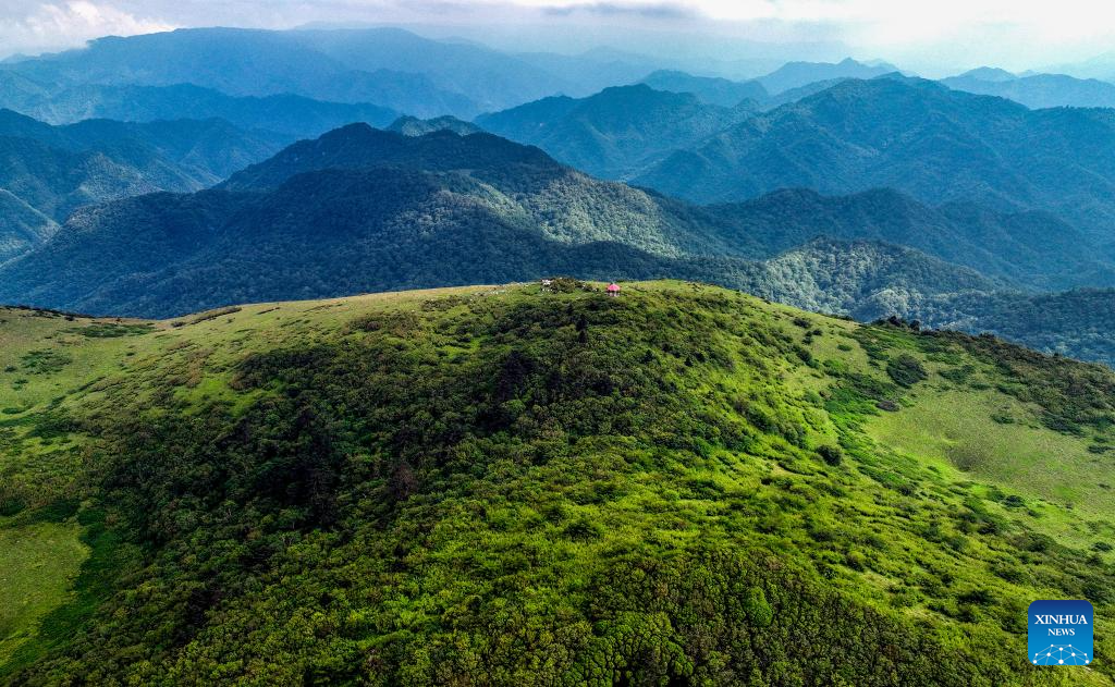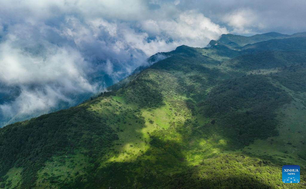 This aerial photo taken on July 19, 2023 shows the scenery of Zibai Mountain in Liuba County of northwest China's Shaanxi Province. (Photo by Zhang Lan/Xinhua)