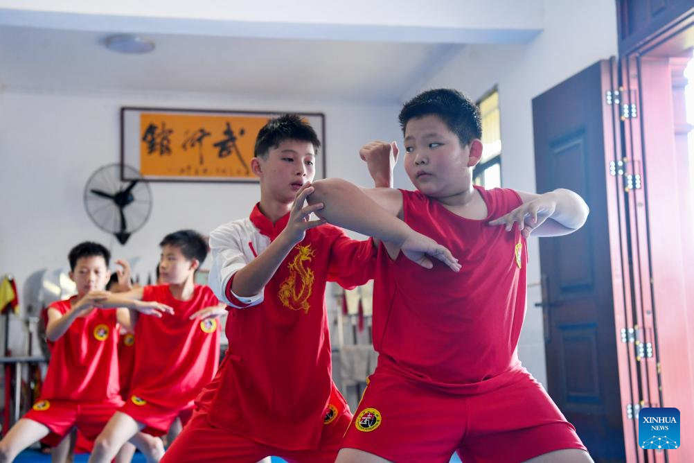 Teenagers practice martial arts in Baima Village of Yuanzhou District in Yichun City, east China's Jiangxi Province, July 21, 2023. (Photo by Zhou Liang/Xinhua)
