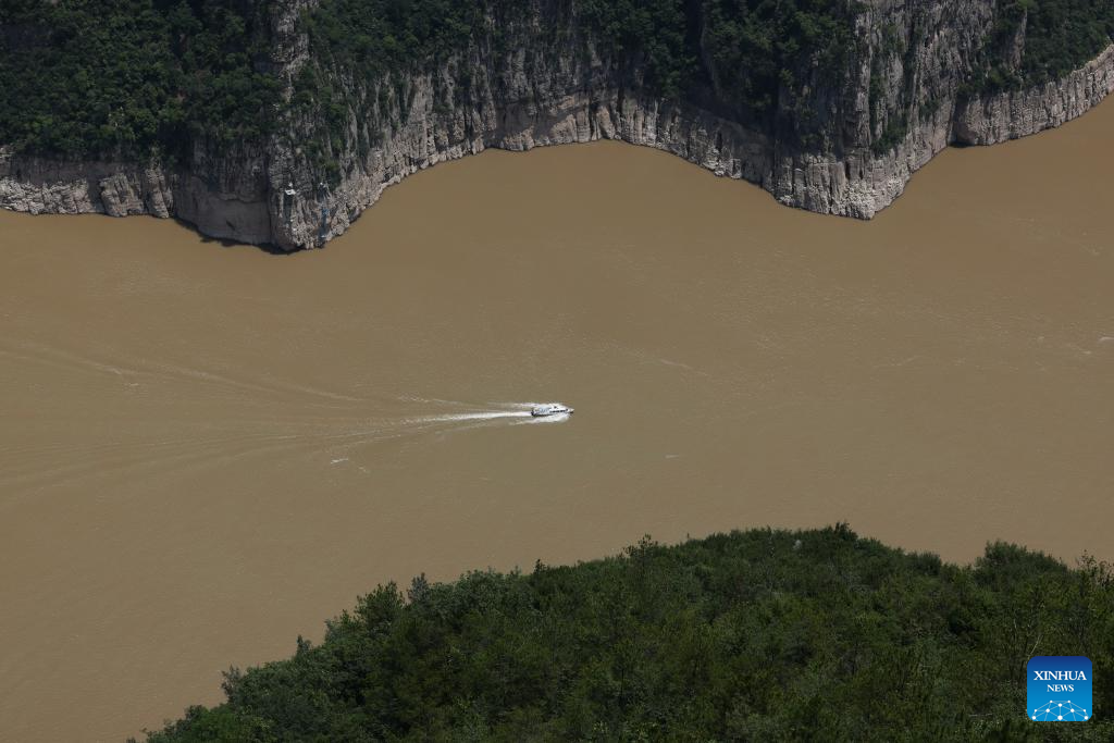 This photo taken on July 7, 2023 shows the scenery of Wuxia Gorge, one of the Three Gorges on the Yangtze River, in southwest China's Chongqing Municipality. Located in the upper reaches of the Yangtze River, the Three Gorges Reservoir area is an important ecological function zone and reservoir of freshwater resources in China.