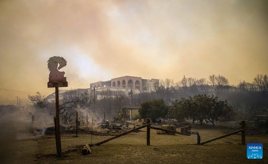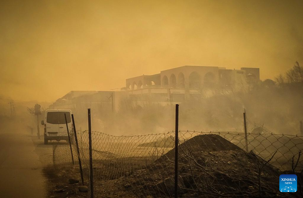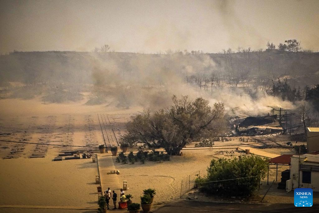 ATHENS, July 23 (Xinhua) -- At least 2,000 residents and holidaymakers were evacuated by sea in the fire-stricken areas of Rhodes island in Greece on Saturday evening, authorities said.