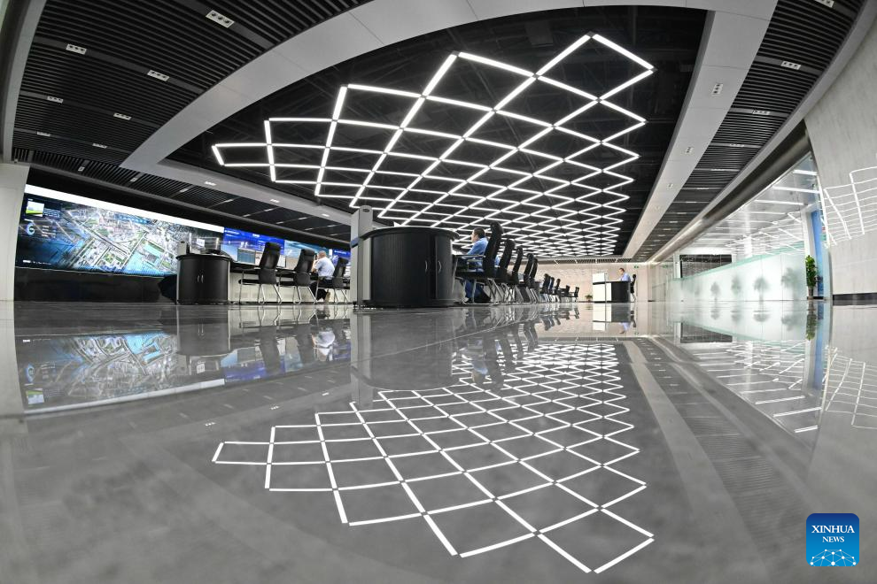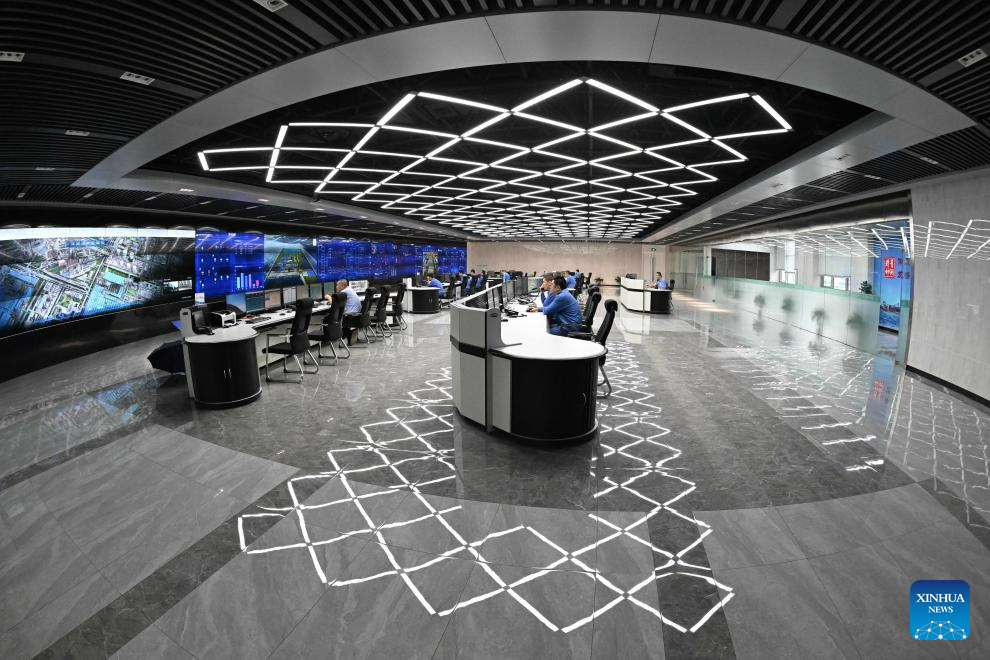 Staff members work at a production control center of Shougang Jingtang United Iron &Steel Co., Ltd. in Tangshan, north China's Hebei Province, July 22, 2023. Tangshan has continued to promote the optimizing of steel industry in recent years, contributing to the high-quality development of the economy. (Xinhua/Zhu Xudong)