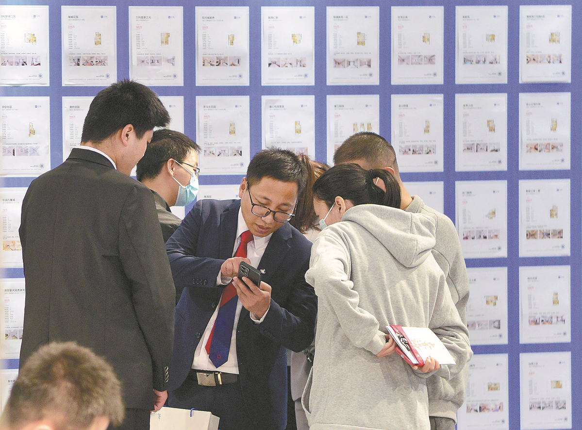 Visitors gather information on pre-owned homes during the 2023 Fuzhou Spring Housing Fair in Fuzhou, Fujian province, on April 2. ZHANG BIN/CHINA NEWS SERVICE