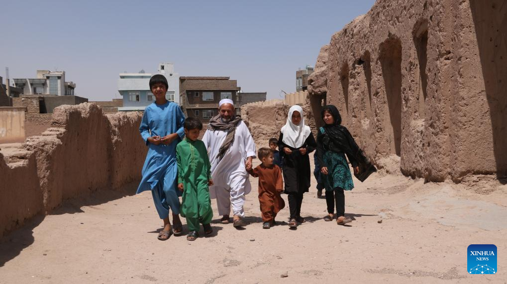 This photo taken on July 15, 2023 shows villagers walking in Qala-e-Shatir village, where the U.S. forces dropped cluster bombs in 2001, in Herat City of west Afghanistan's Herat province. (Photo by Mashal/Xinhua)