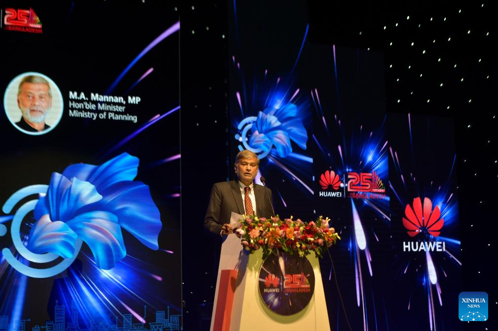 Bangladeshi Planning Minister MA Mannan speaks during an event celebrating Huawei's 25 years of operation in Bangladesh, in Dhaka, Bangladesh, on July 20, 2023.?(Xinhua)