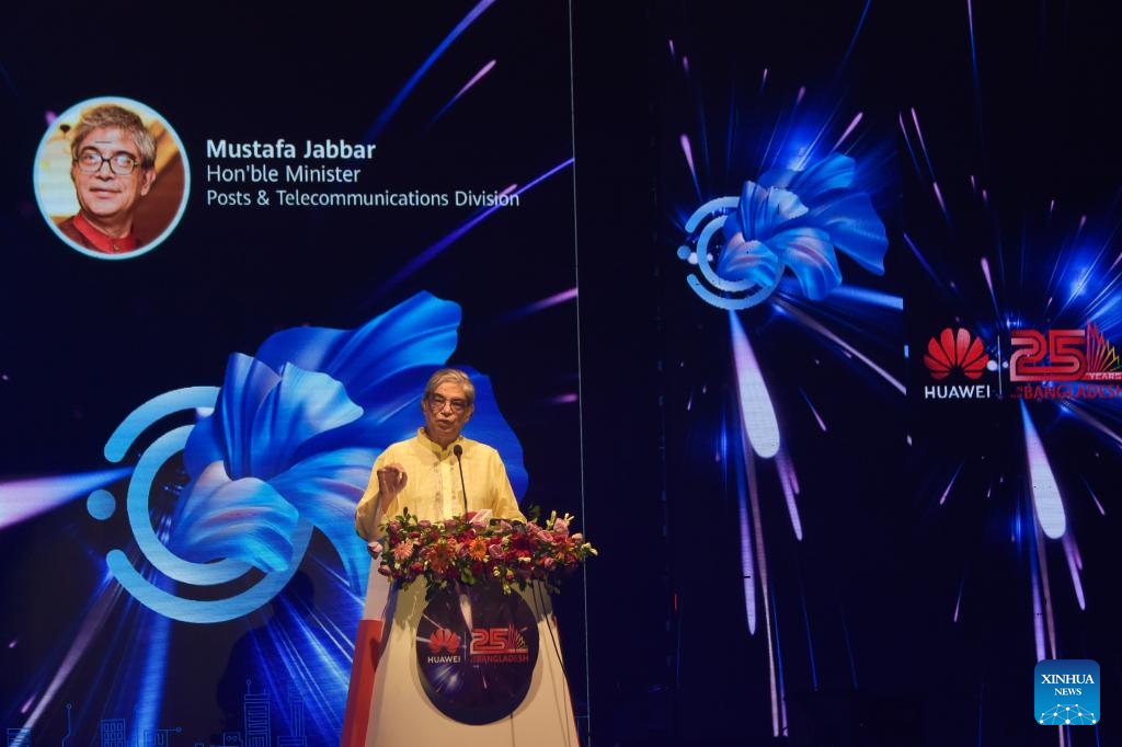 Bangladeshi Post and Telecommunications Minister Mustafa Jabbar speaks during an event celebrating Huawei's 25 years of operation in Bangladesh, in Dhaka, Bangladesh, on July 20, 2023.?(Xinhua)