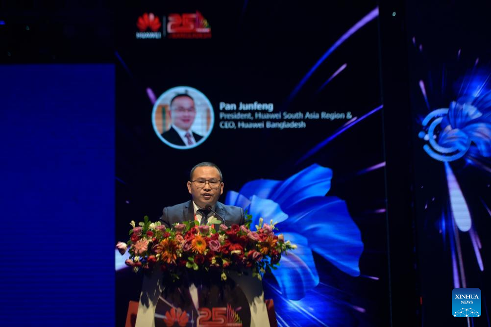 President of Huawei South Asia and CEO of Huawei Bangladesh Pan Junfeng speaks during an event celebrating Huawei's 25 years of operation in Bangladesh, in Dhaka, Bangladesh, on July 20, 2023.?(Xinhua)