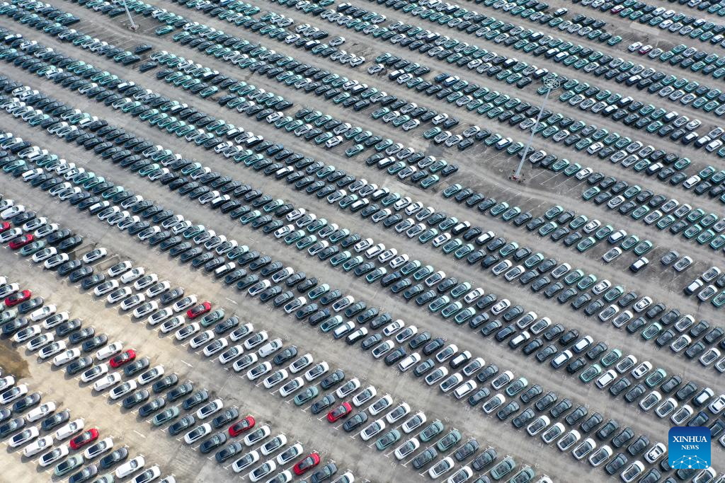 This aerial photo taken on July 20, 2023 shows a vehicle distribution center of Chang'an Auto in Jiangbei District, southwest China's Chongqing Municipality. (Xinhua/Tang Yi)