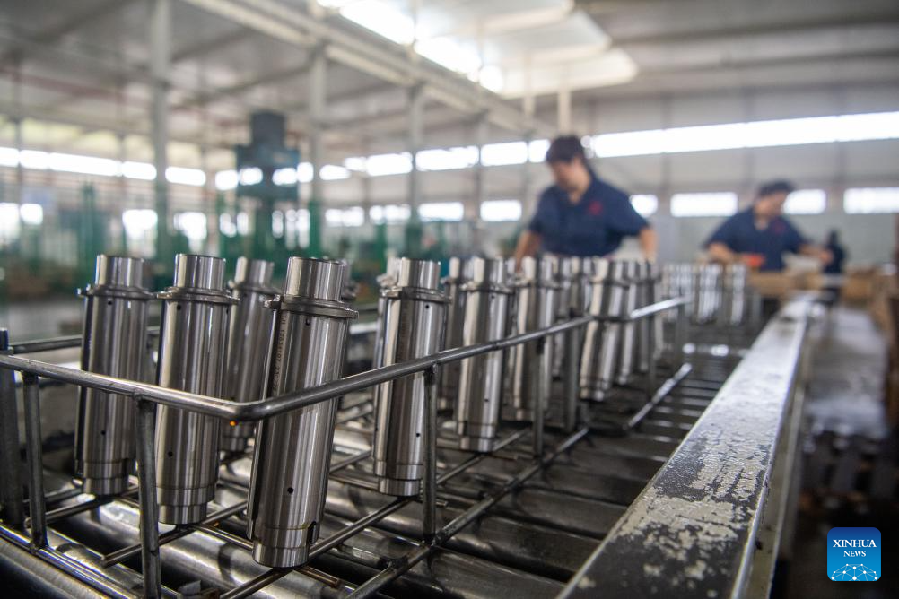 Workers are busy at a workshop of an auto parts production company in Yongchuan District, southwest China's Chongqing Municipality, July 24, 2023. (Xinhua/Tang Yi)