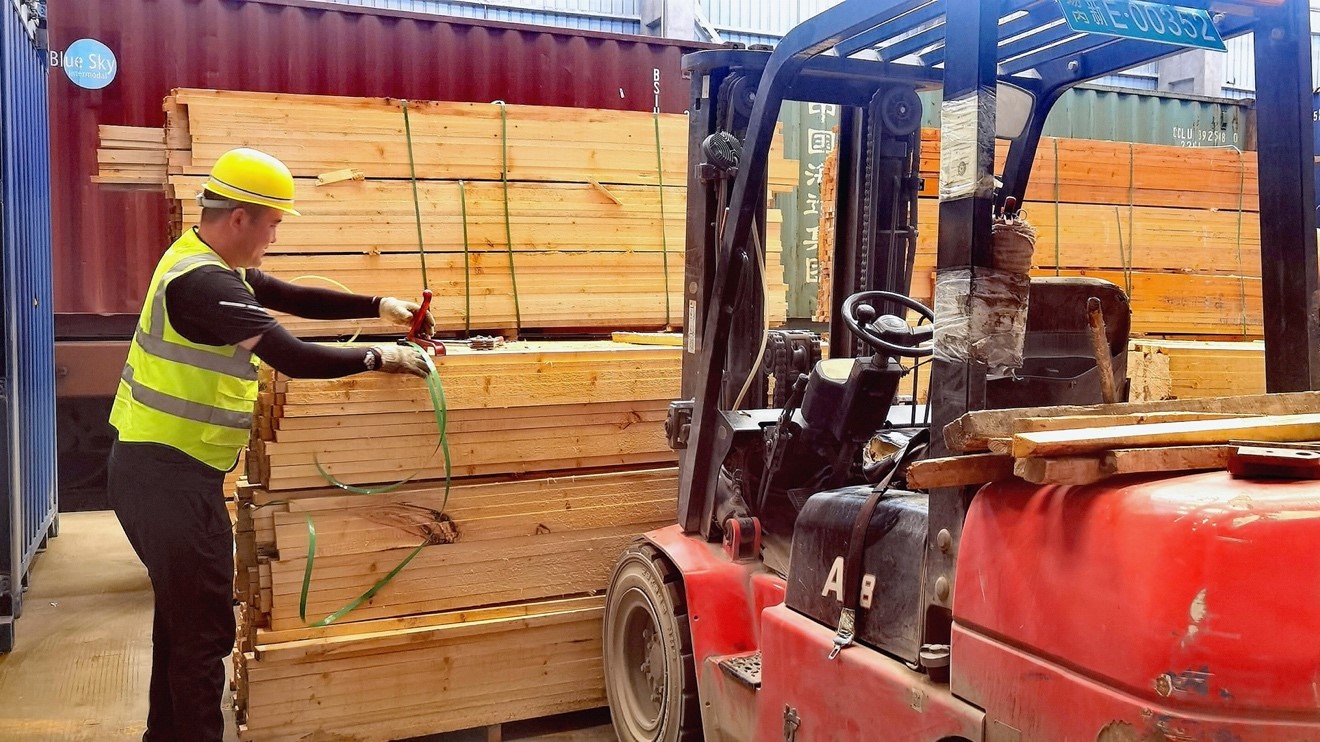 A worker inspects goods at a transfer station at Alataw Pass in northwest China's Xinjiang Uygur Autonomous Region, July 24, 2023. (People's Daily Online/Xian Jiangnan)