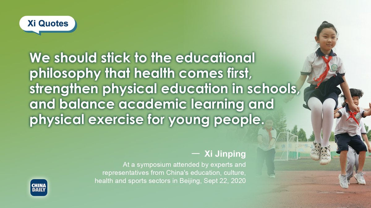 Over the years, President Xi Jinping has advocated for greater physical exercise by Chinese youth in addition to academic learning. Here's what he has had to say on the topic.