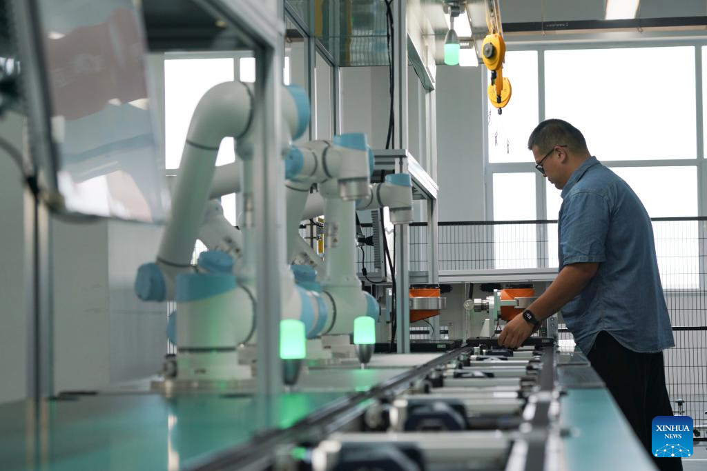 A staff member works in a robotics company in Linzi District of Zibo City, east China's Shandong Province, July 25, 2023.?(Xinhua/Zhang Haobo)
