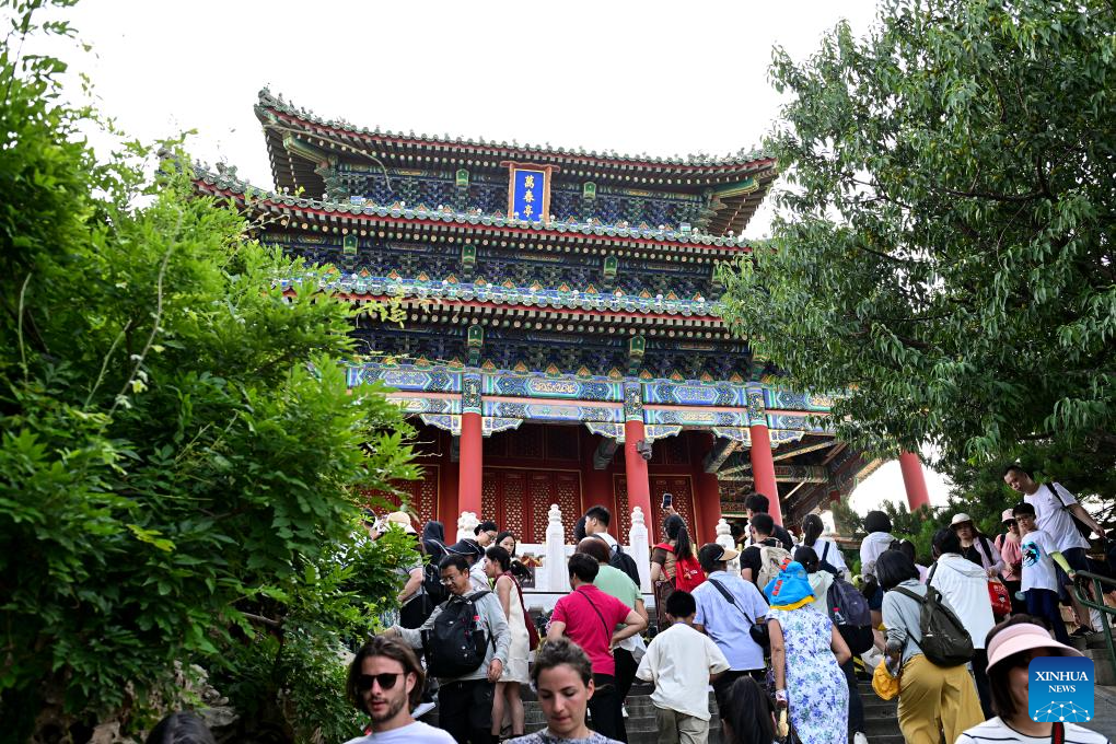 Tourists visit the Jingshan Park in Beijing, capital of China, July 4, 2023. (Xinhua/Li Xin)