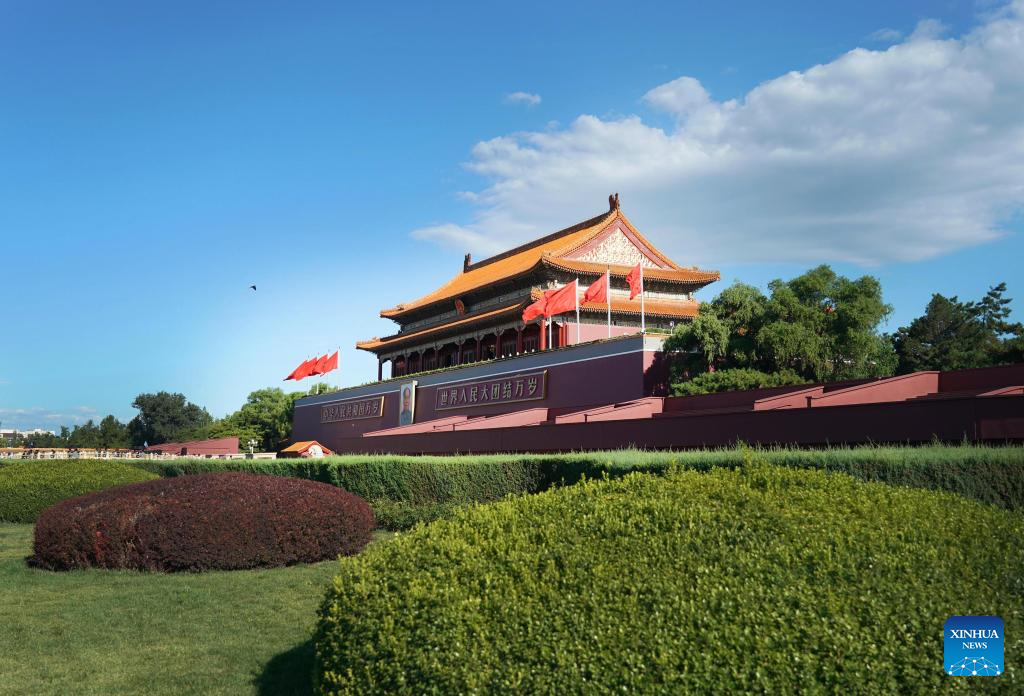 This photo taken on July 9, 2023 shows the Tian'anmen Rostrum in Beijing, capital of China. (Xinhua/Ren Chao)