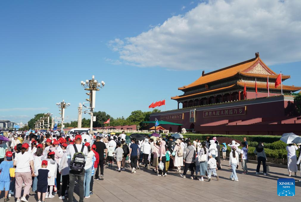 People visit the Tian'anmen Square in Beijing, capital of China, July 9, 2023. (Xinhua/Ren Chao)