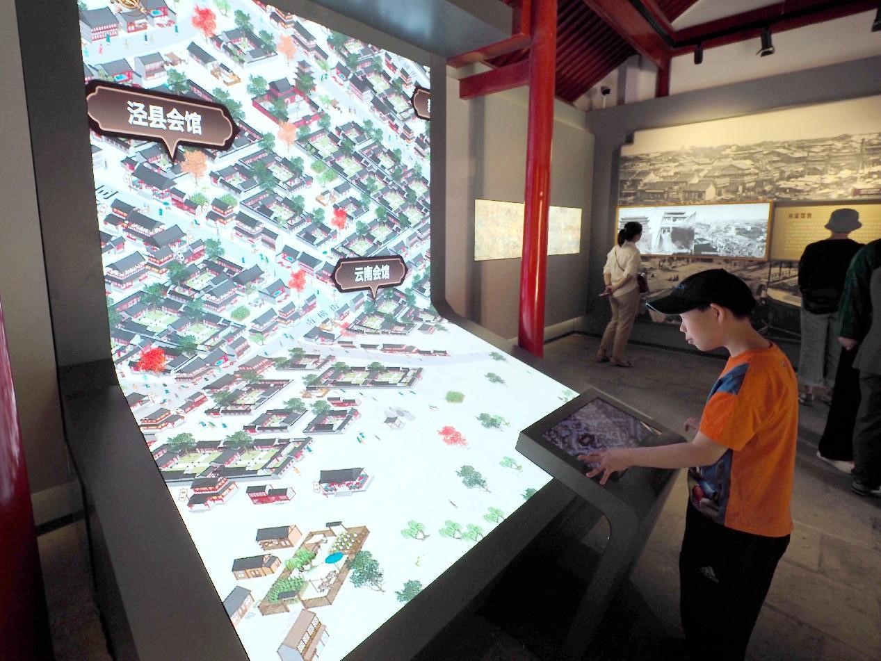A visitor uses a digital device at the Beijing Xuannan Cultural Museum. (People's Daily Online/Du Jianpo)