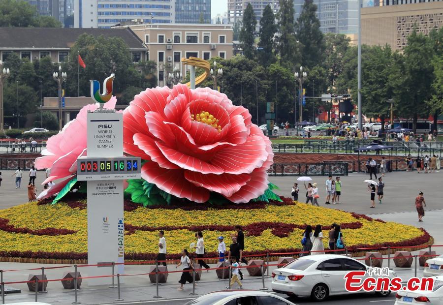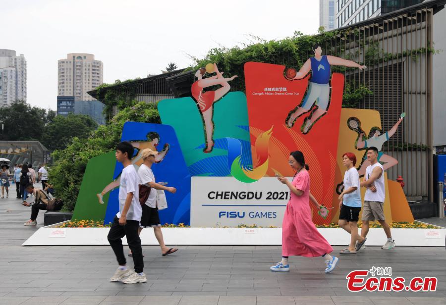 A Chengdu Universiade themed decoration is seen in Chengdu, southwest China's Sichuan Province, on July 25, 2023. (Photo: China News Service/Wang Lei)
