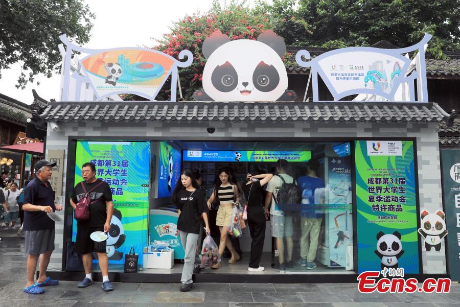 Tourists visit an official souvenir store of the Chengdu Universiadea at the Kuanzhai Alley Historic District in Chengdu, southwest China's Sichuan Province, on July 25, 2023. (Photo: China News Service/Wang Lei)