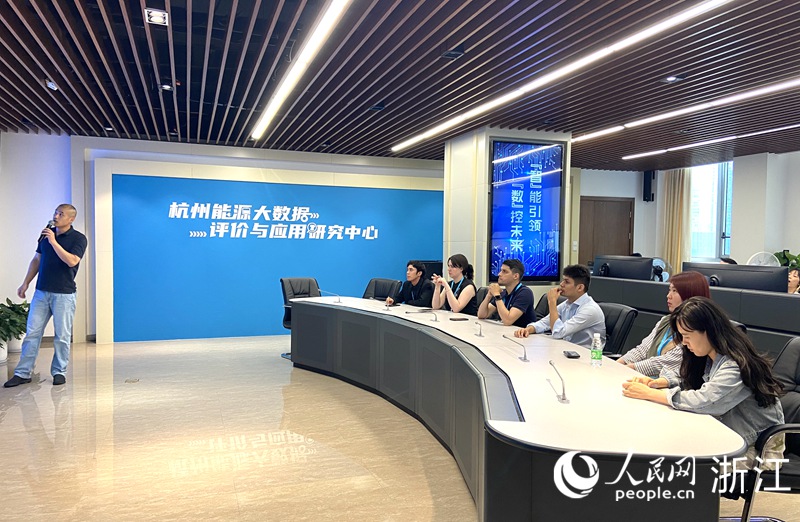 Members of the“Hello, Carbon Neutrality" research group listen to the introduction to "Hangzhou dual carbon digital intelligent platform" in the Hangzhou Energy Big Data Evaluation and Application Research Center. (People’s Daily Online/Fang Pengyimeng)