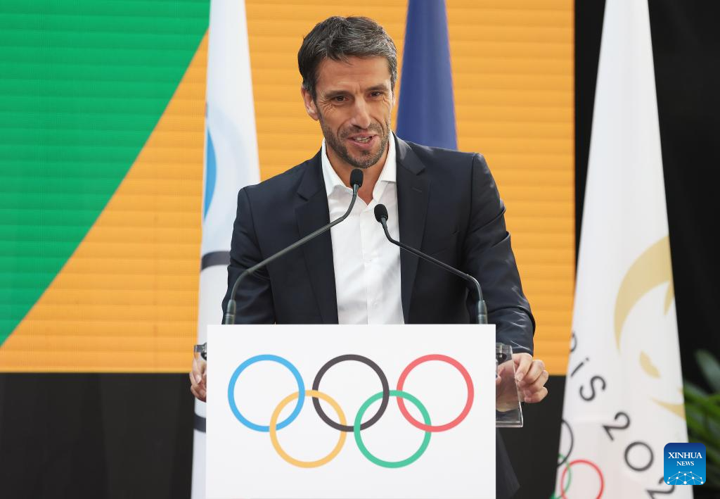 President of the Paris 2024 Organising Committee Tony Estanguet addresses a ceremony marking one year until the opening ceremony of the Paris Olympics in Saint-Denis, near Paris, France, July 26, 2023. (Xinhua/Gao Jing)