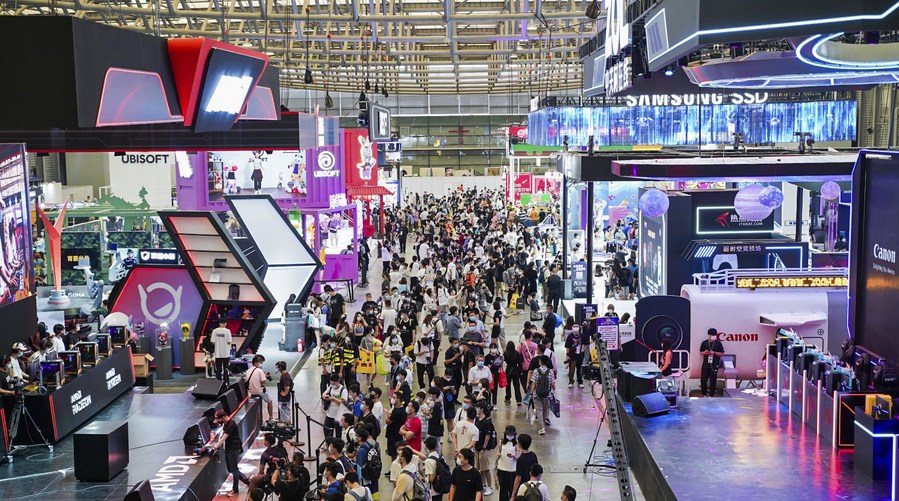 Photo provided by the interviewee shows people visiting ChinaJoy 2021 in Shanghai, east China. ChinaJoy, Asia's biggest game event held annually in Shanghai, is scheduled to run from July 28 to 31, attracting nearly 500 enterprises from 22 countries and regions. (Xinhua)