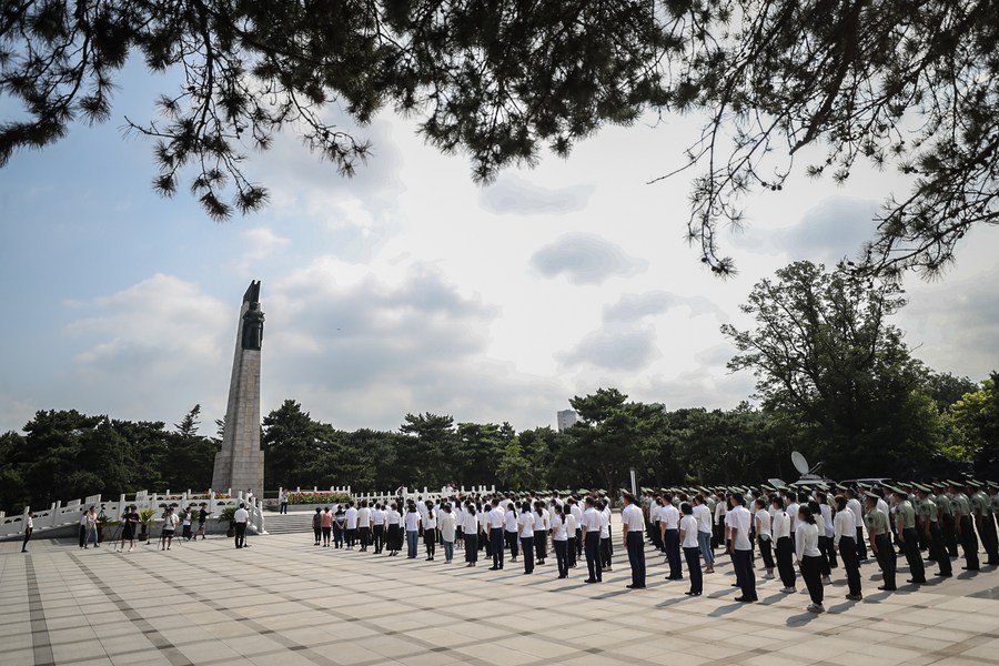 A mourning ritual is held at a cemetery resting 123 Chinese People's Volunteers (CPV) martyrs in Shenyang, northeast China's Liaoning Province, July 27, 2023. (Xinhua/Pan Yulong)