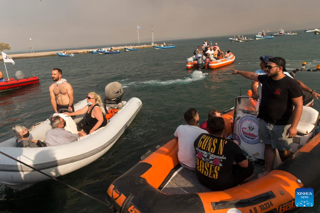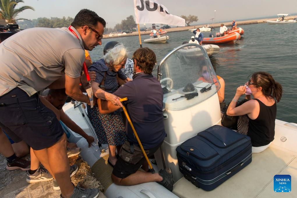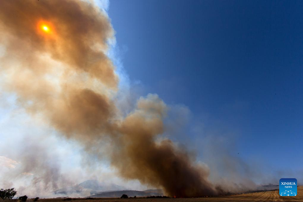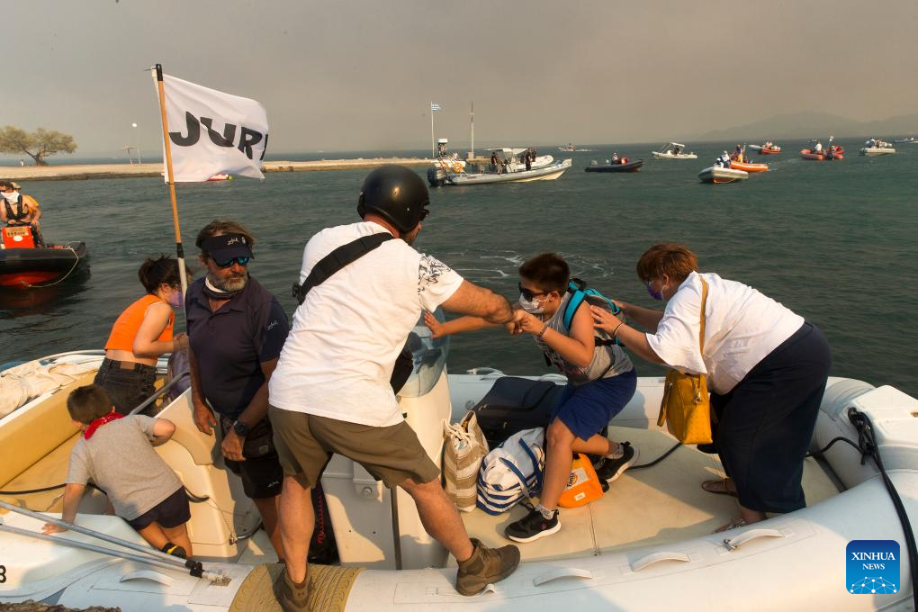 ATHENS, July 27 (Xinhua) -- Wildfires raging across parts of Greece has forced the evacuation of an air force base at the seaside town of Nea Anchialos, near the port city of Volos, as well as 12 settlements in the area, Greek national news agency AMNA reported on Thursday.
