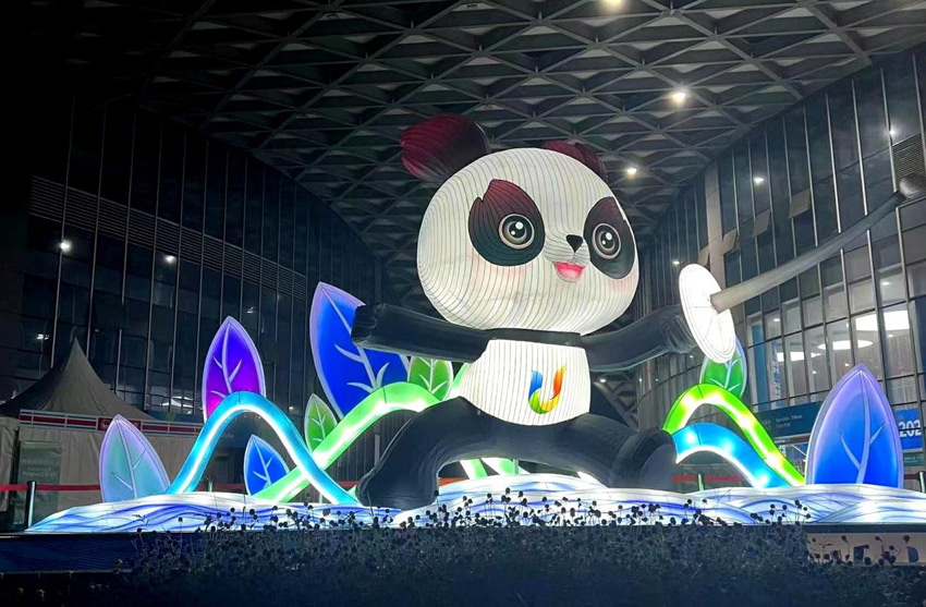 By adhering to the concept of "green, smart, vibrant, and sharing" in organizing the games, the lanterns feature Rongbao, the panda mascot of the Chengdu Universiade, and the competitions at the games, showcasing Universiade culture and Sichuan culture.