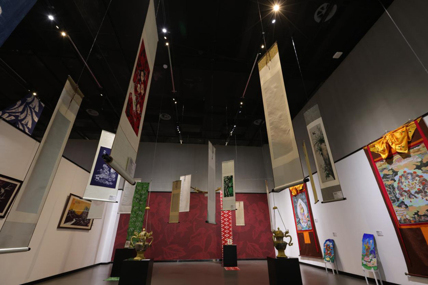The exhibition, which will run until Aug. 11, showcases 71 excellent art works, 90 photography works, and 124 representative works of national intangible cultural heritage items in Sichuan.